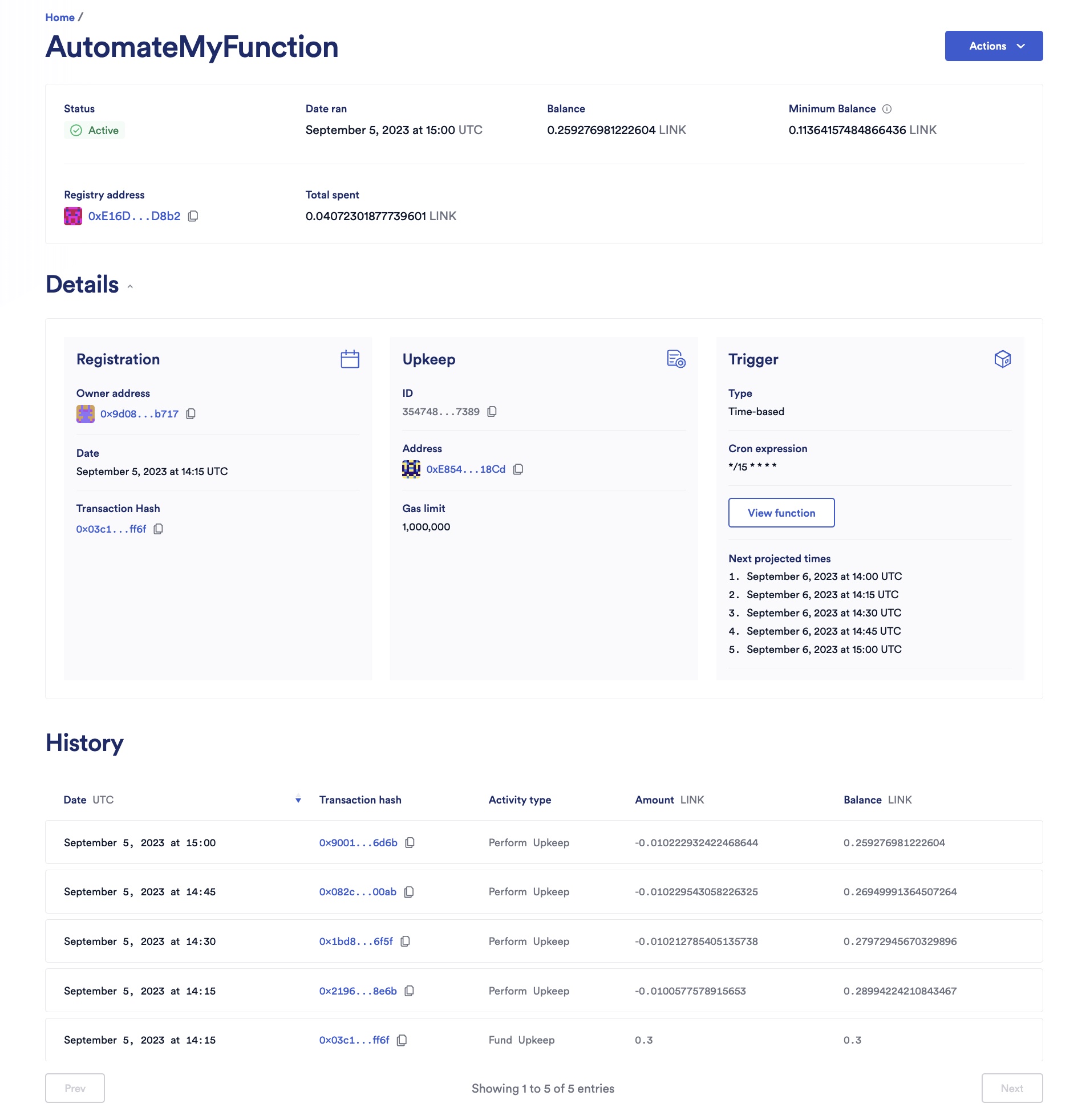 As you can see in the History table, the upkeep is running every 15 minutes. On your terminal, run the readLatest script to read the latest received response:
